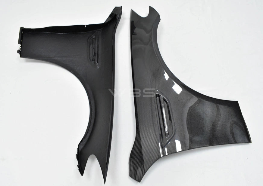 Authentic carbon fiber fenders, meticulously crafted and offered as OEM replacements. Introduce your M5 on the road with the epitome of luxury and aggressive style.