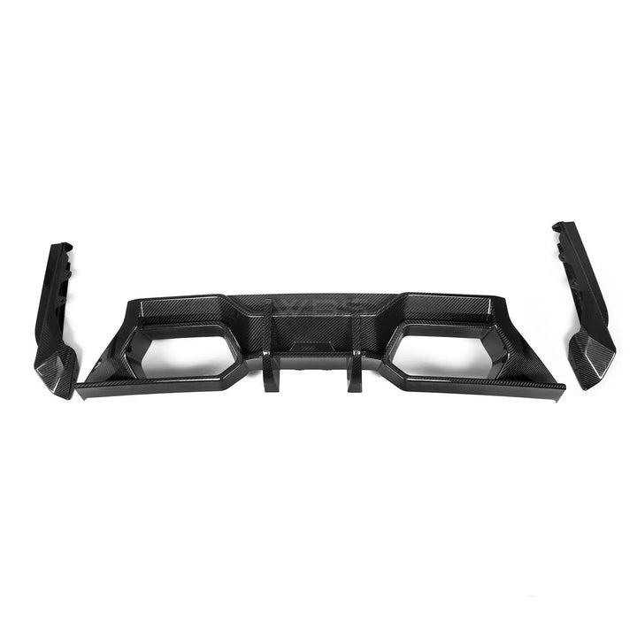 A bold and striking diffuser, designed to bring an exotic and ultra aggressive rear appearance. The DTM Design Rear Diffuser is meticulously crafted from premium 2x2 vacuum-formed dry carbon fiber, featuring dual side splitters for a wider and lower G87 stance.